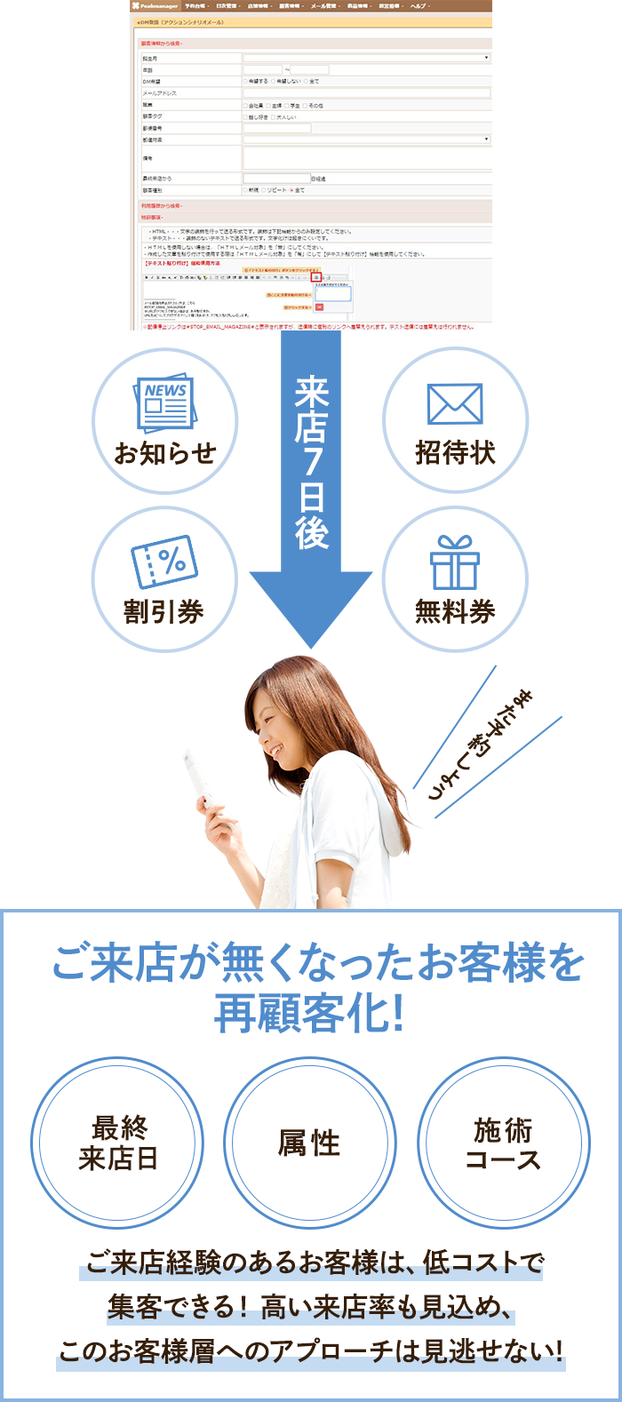 ピークマネージャーを導入して、当日予約が多い当店のお客様にも対応ができるようになりました。